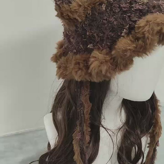 Inspired by caramel latte tones, this handmade cat ear jellyfish hat blends rich deep brown mixed yarn for a warm, cozy, and gentle autumn-winter look. Each piece is made to order — soft, comforting, and uniquely yours.