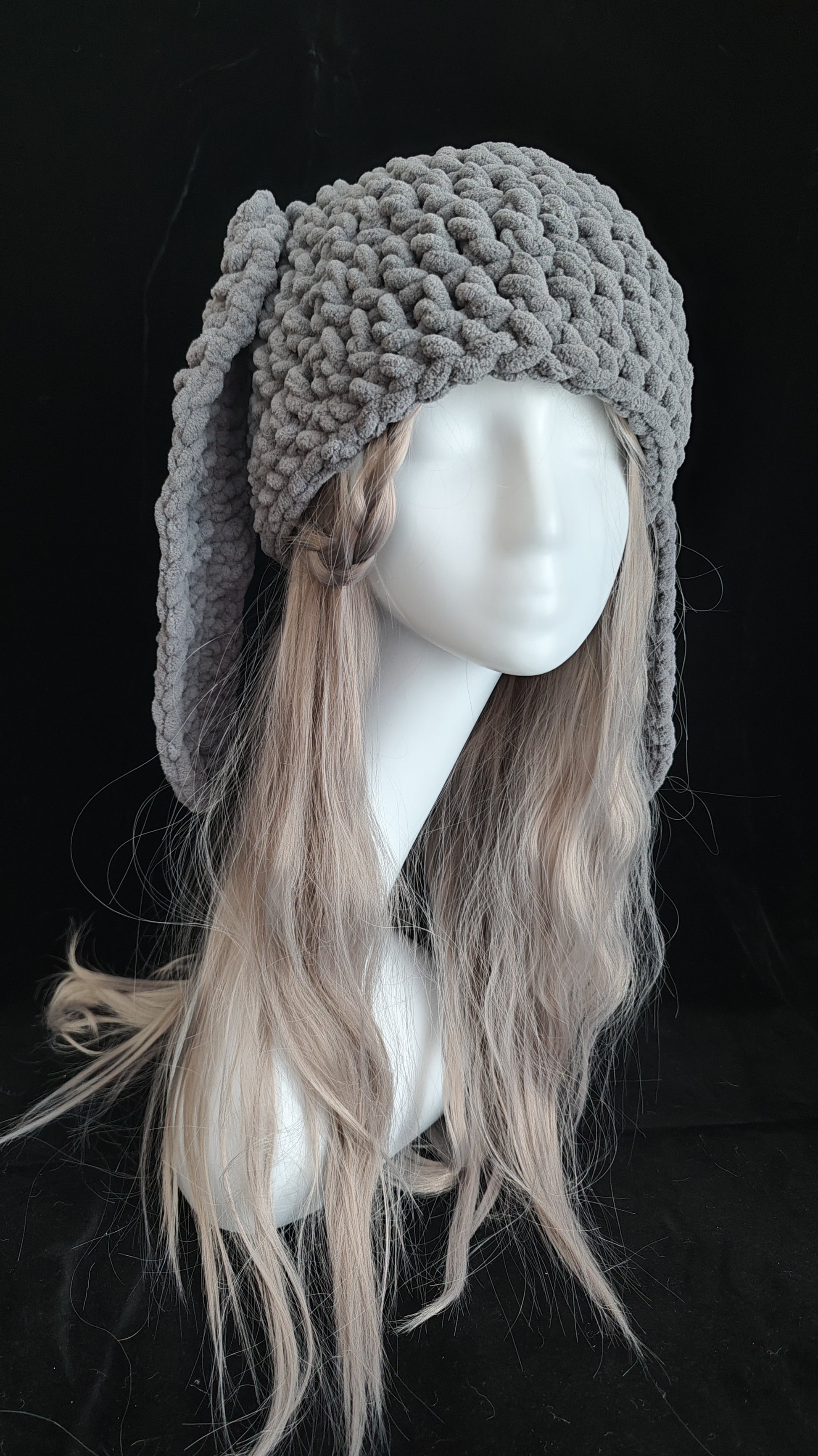 This handmade grey long-ear bunny hat is crafted from soft, fluffy mixed yarn, featuring extra-cute long ears for a cozy and playful winter look. Each piece is made to order β warm, adorable, and uniquely yours.