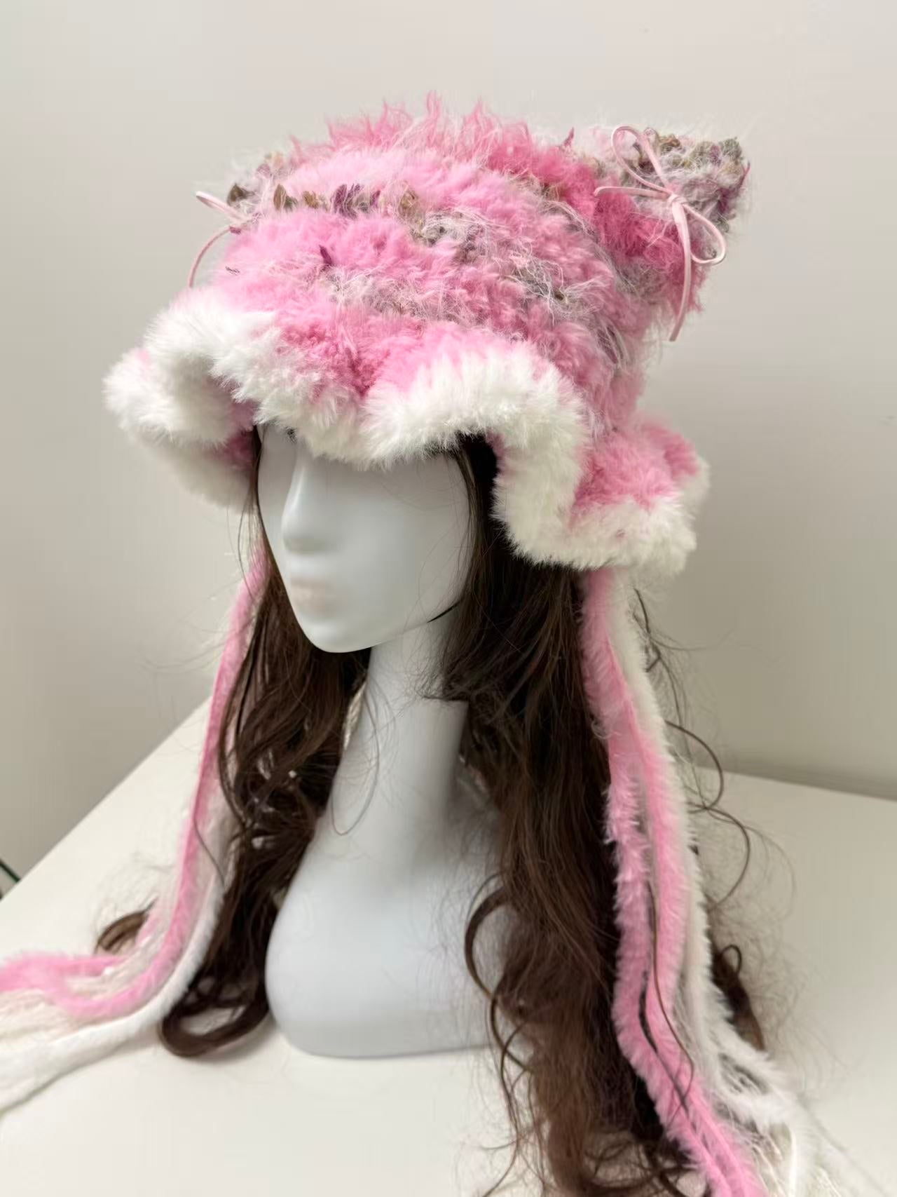 The soft pink mixed yarn brings a gentle, romantic tone, while the creamy white edge adds a touch of brightness β€” like fresh snow falling on a strawberry cake. πŸ“β„οΈ