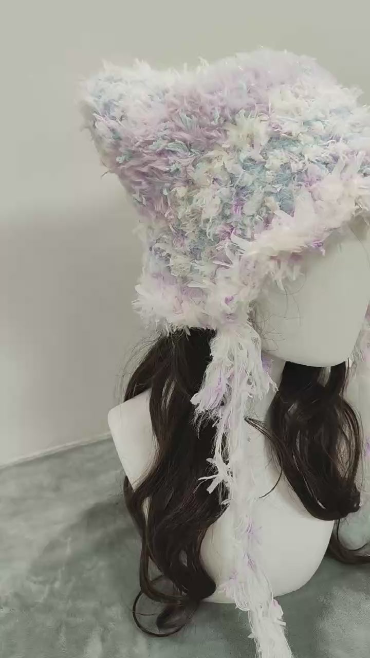 Snow Fairy Cat Ear Jellyfish Hat – Handmade Fluffy Mixed Yarn Beanie