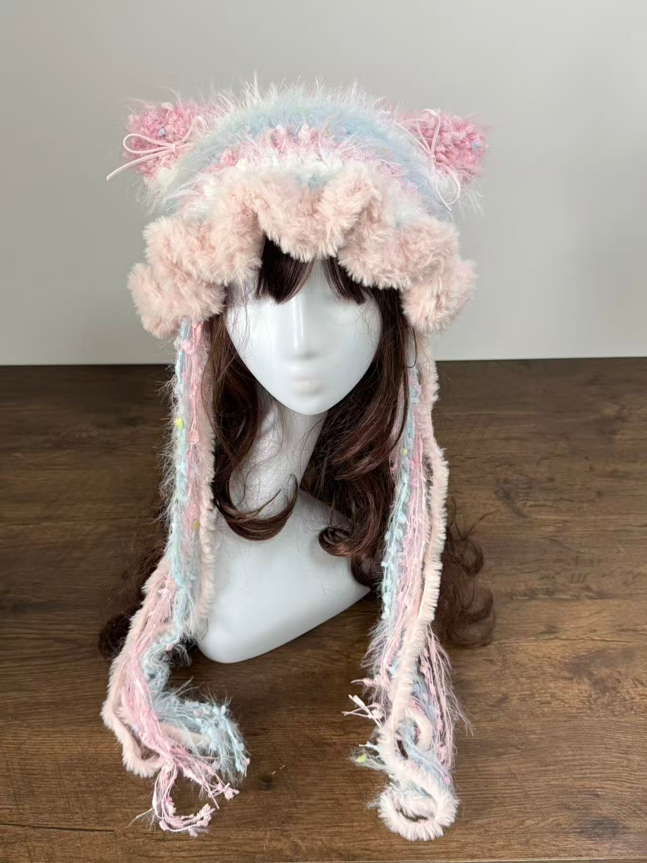 Like cotton candy in winter air 🍭❄️ — this Sweet Pink and Blue Cat Ear Jellyfish Hat blends dreamy pastel tones and soft textures for a look that’s cozy, playful, and irresistibly cute.